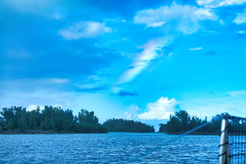 A rainbow peaks through clouds looking East in the direction I will be heading further across the Atlanitc Ocean soon enough.