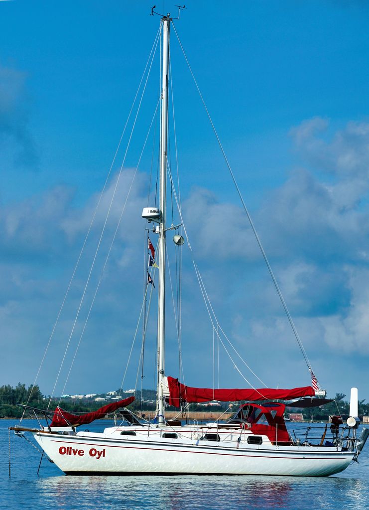 As far as I could tell, this sailboat "Olive Oyl" also had a solo skipper. I later noticed her at anchor in Horta Harbor, Faial, Azores but never got the chance to chat with her captain.