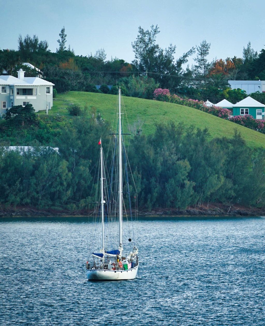 I planned a full day to scooter completely around Bermuda. To remain on the safe side I anchored Southern Light back across the harbor. This photo was taken just out of town from a roadside bluff.
