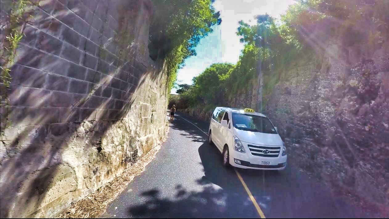 Screenshot from video of how incredibly dangerous some of the roads are here! Few roads have sidewalks. I had passed this lady walking around a blind corner when a loaded truck came barreling around much too fast. I had to circle back just to make sure she was ok. As I returned this taxi whipped over as I was approaching. There was very little space for larger vehicles to pass between the shear rock walls, not to mention anything else between. I don't believe vehicles traveling in opposite directions could have stopped given the speeds they were traveling and the limited view. Fast drivers mixed with very scary situations are not safe! "On a per-capita basis, Bermuda's roads are among the most deadly in the world"