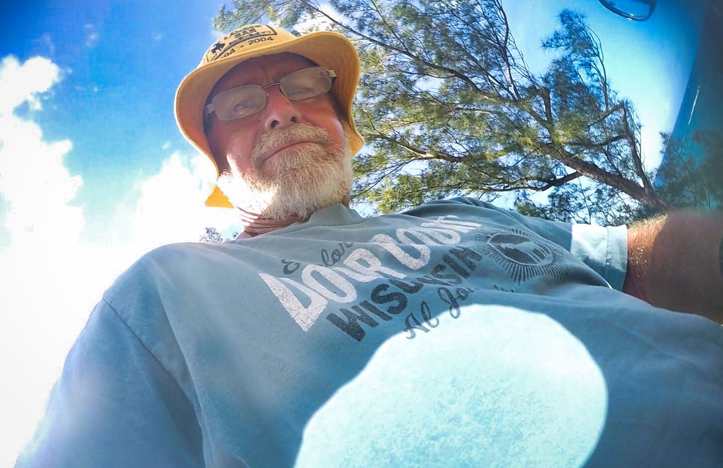 Stopped to wipe fog from inside the gopro case mounted on helmet and noticed I was wearing a Door County, Wisconsin "Al Johnson" t-shirt. We have since moved to Door County!