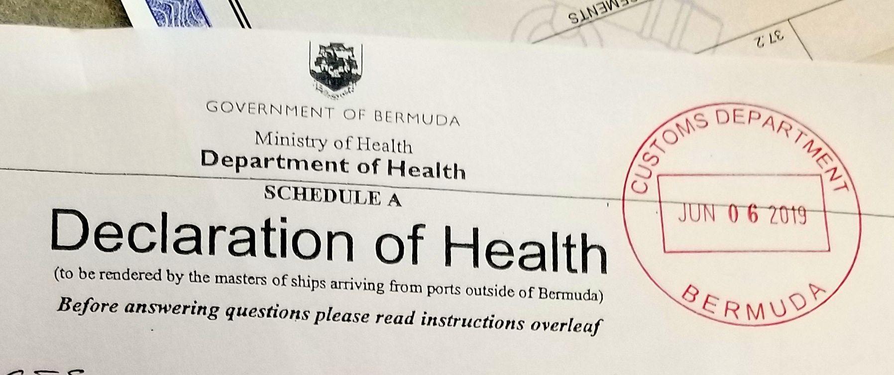 I was headed for St. George Harbor on Bermuda's East end. St. George Harbor is a port of entry for small vessels on Bermuda. Cruise ships visit the North West end. A short time later I received a VHF call from the port authority. After switching to a duplex channel they asked many questions from finances to all marine registration numbers, including EPIRB.