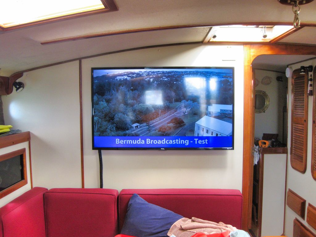 Settling in I checked for TV stations. This Bermuda Broadcasting Test was the only one and I don't remember it changing while I was in harbor. I settled in for some much needed rest