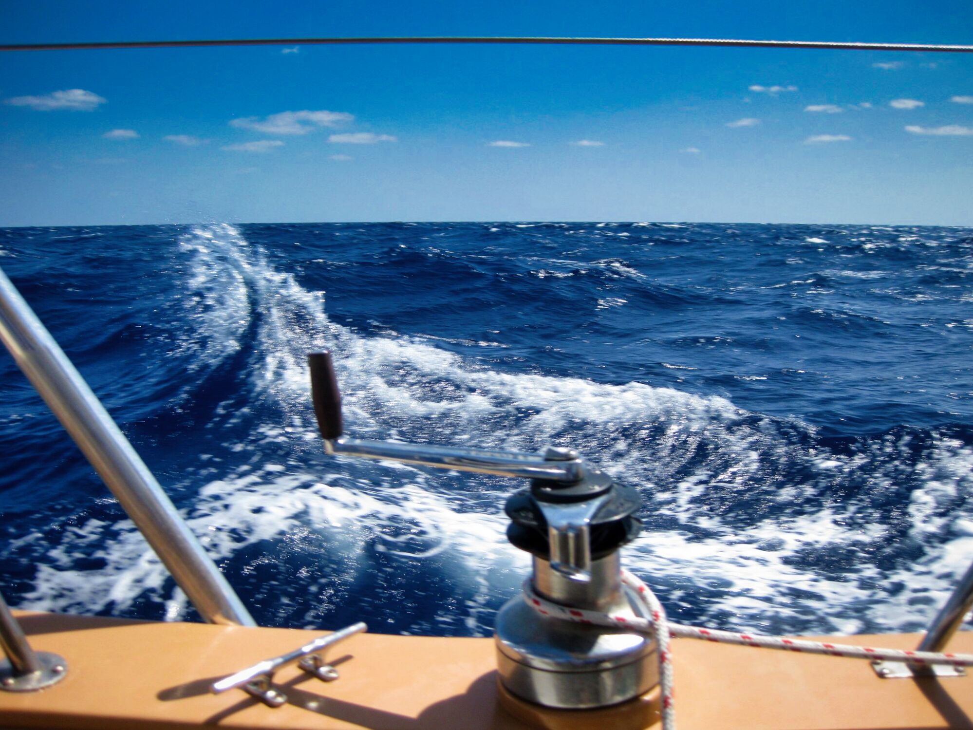 Sailing close hauled on port tack with a nice boost from behind thanks to the Gulf Stream.
