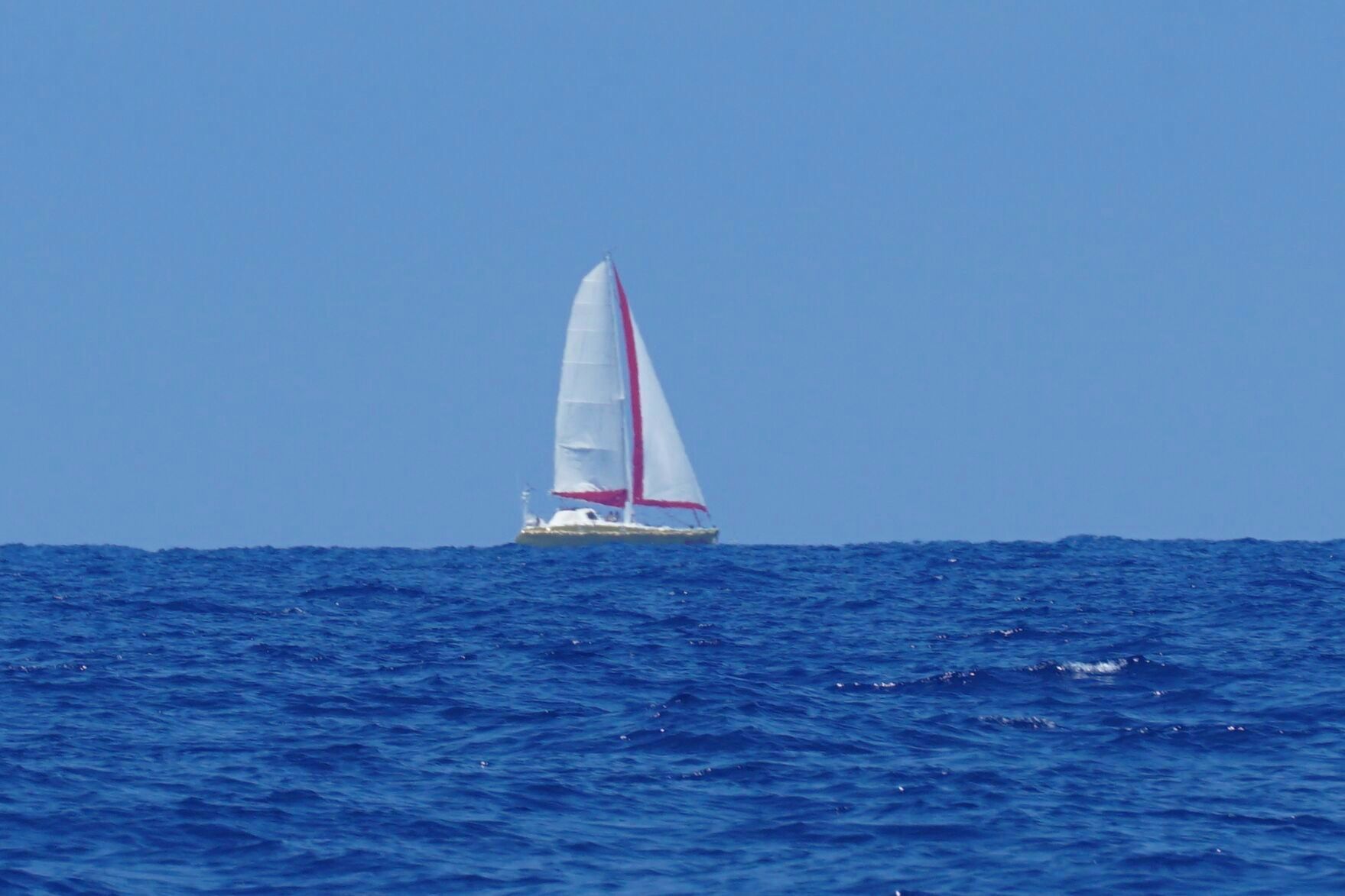 A catamaran heading southeast, most likely Bahamas bound.