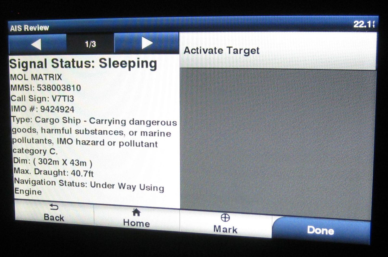 I rely more and more on the AIS alarm. Knowing that Southern Light's position, course and speed were also being transmitted to the ships eased some tension.