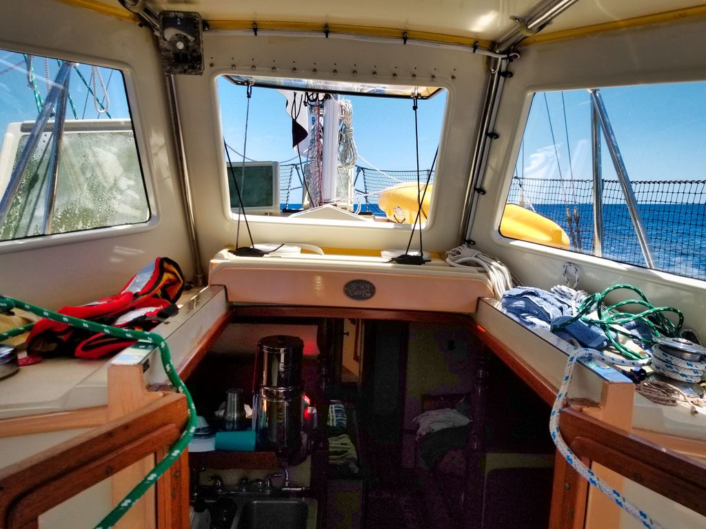 Around this time my tidiness started to take a dive. It was so easy to fall into slacker mode during calm times, but I always kept the decks and cockpit cushions clear so as not to trip. Keeping to my safety self I almost always put the life harness on deck and clipped the teather onto something very secure. Many careless sailors never made it to their next port!