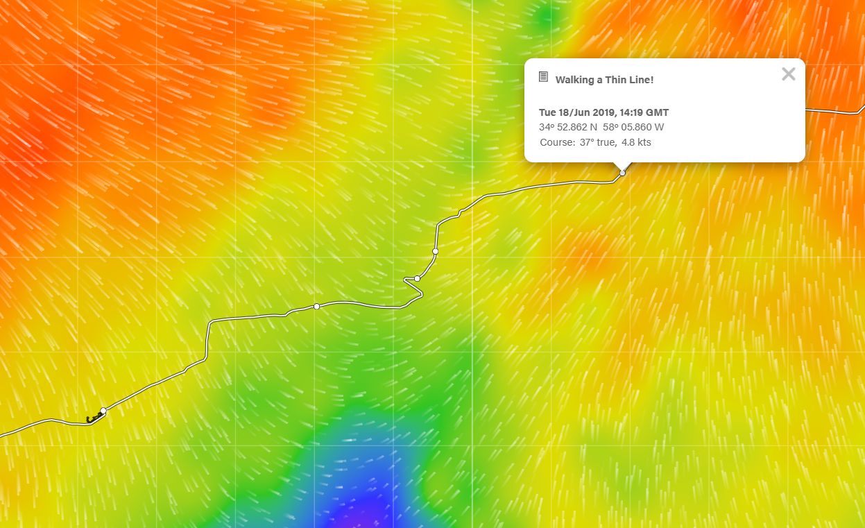 Four sail changes already this morning. To far south, no wind, to far north, to much! Like moving target circus games. I'm doing OK though I was hoping for better progress. It is what it is and I'll take it.