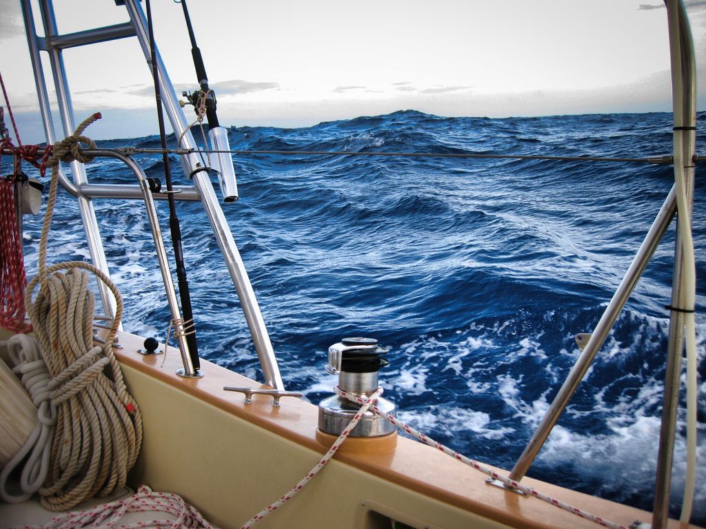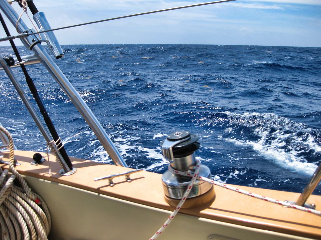 Sargassum weed was everywhere but the wave action tore the large clumps into smaller pieces. Hovering around hull speed also kept any pieces from clinging to the prop and rudder very long.