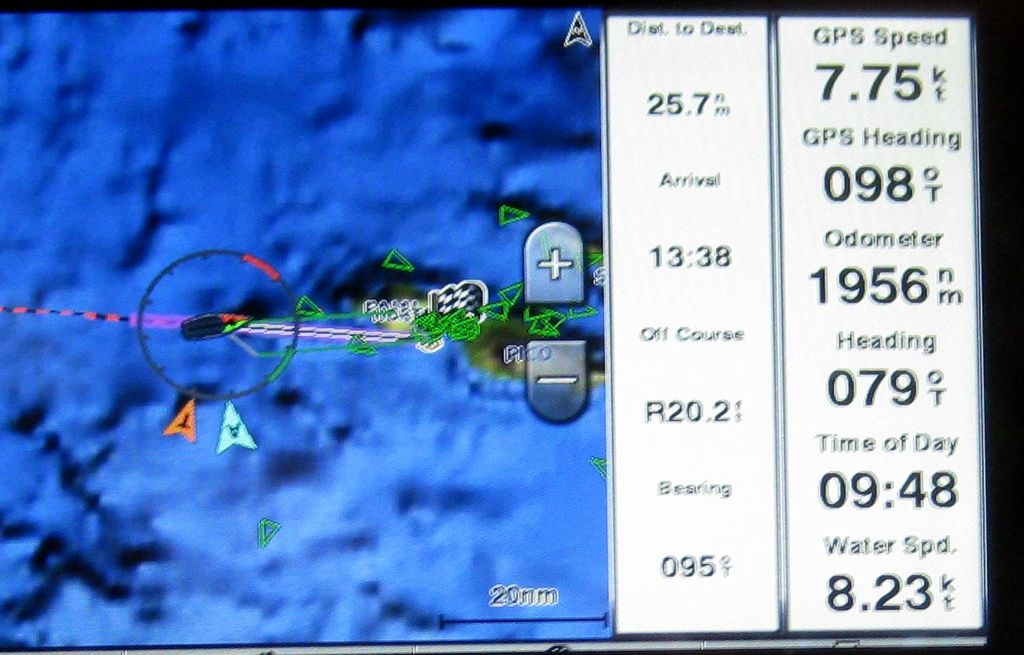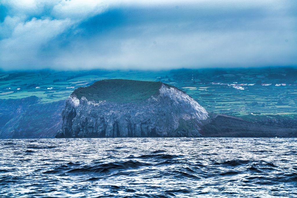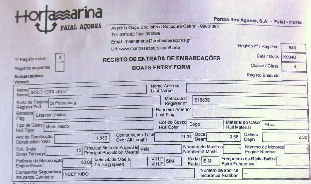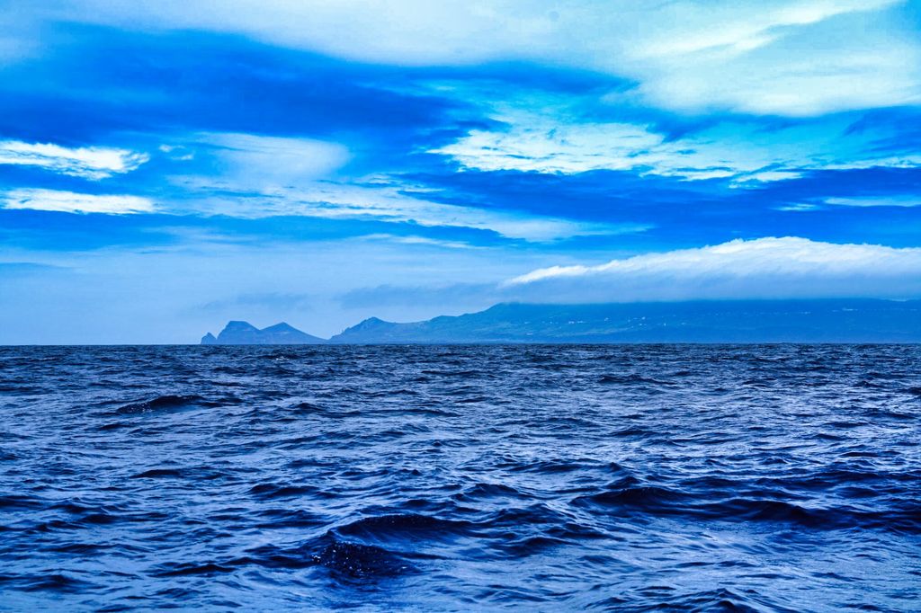 Spotted land through the haze about 10 miles distant. The port of Horta is on the opposite end or aprox. 25 nm from this current position.