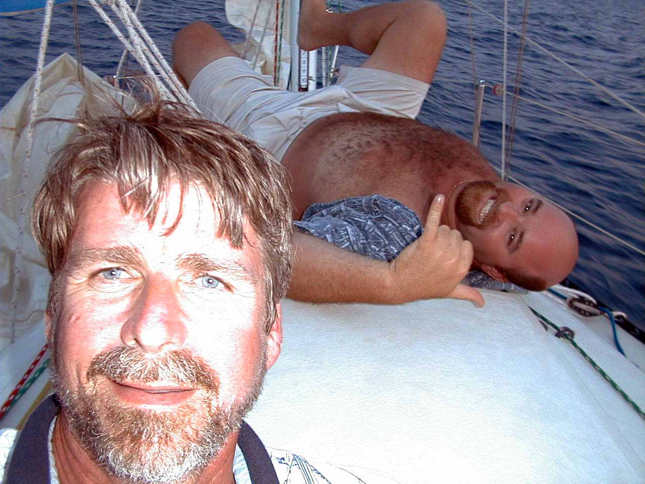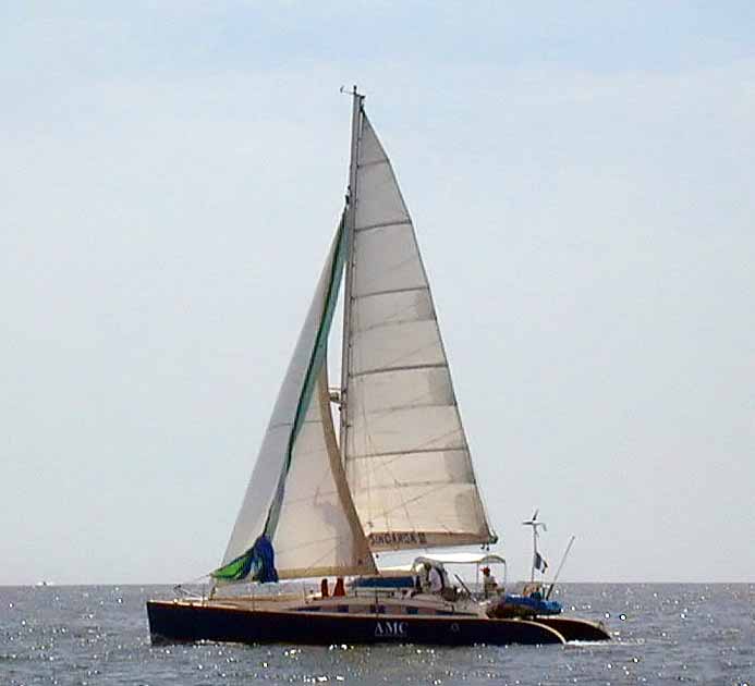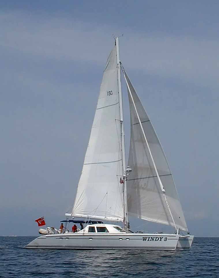 Another large catamaran Windy 3 inching by us. I might add that all these photos were taken with my first digital camera, a Nikon Coolpix 900. This camera was high tech at the time - a whooping 1Mpix and I splurged to get a 48Mb Compact Flash Card - my how times have changed in 10 years. My current camera is 21Mpix with 66Gigs of Compact Flash Cards. That is 2Mpix per year advancement, great but other technologies have regressed in these 10 years, take Microsoft for example!