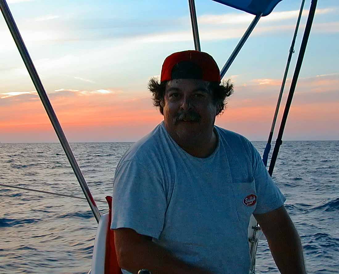 Joe enjoying a refreshing race beverage getting ready for our first night out. This is about a 300 mile voyage, it should be under three days sail if we average around 5 knots.