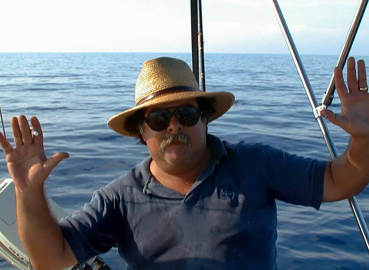 Later that evening was some of the most calm water I have ever seen out here 80 miles from anywhere. I worked as a Sailing Instructor for Annapolis Sailing School for years, made (14) 10 day trips from St.Pete to the Dry Tortugas through this same area and never have I seen it this calm! I just keep on thinking some wind has got to blow...into the night we sit. We had 3 hr watches and it was really difficult to keep the boat pointed in the right direction. It would take 5 to 10 minutes getting it facing South again if we let it run on its own. The autopilot will not work without forward motion so we had to just feel it out by hand - hour after hour. We play fair but fair is not playing nice about now!