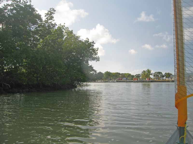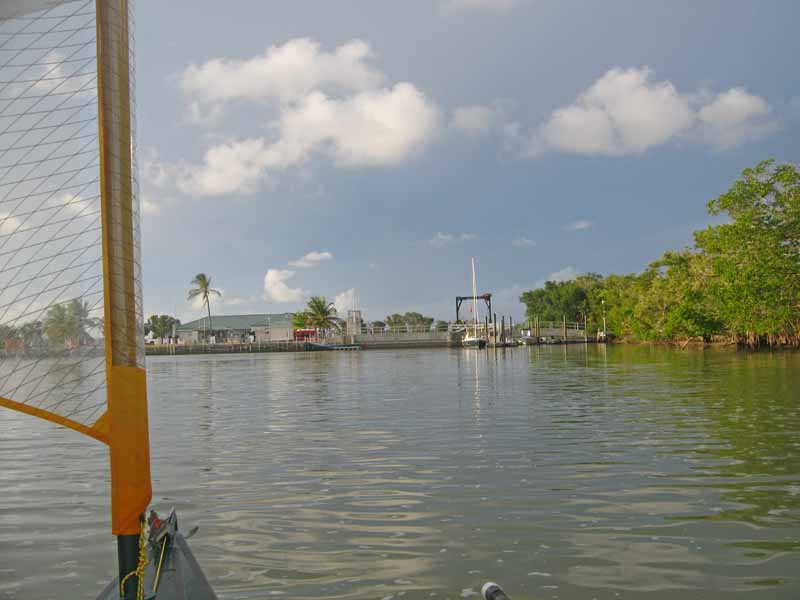 It has been 11 days since departing on the other side of this marina. A dam seperates the backcountry from the Gulf side. You may be able to see the old lift beyound the sailboat. It could transport a boat, for a fee, from one side to the other. It is no longer operable thanks to hurricanes.