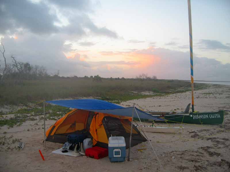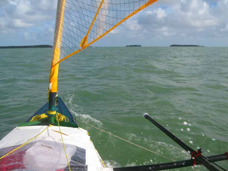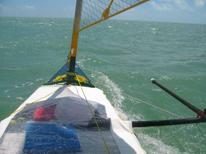 The forecast out of Key West remains the same, today looks like my best chance to travel Southeast for a while. Thunderstorms remain, I'm hoping to avoid them but even more important are the winds, 15-20 mph are pushing the limits of this canoe design. I feel confident the rig can it, what I'm most concerned about is the low freeboard and water entering through the laced cover from the constant of pounding waves while pressing the boat to weather.
