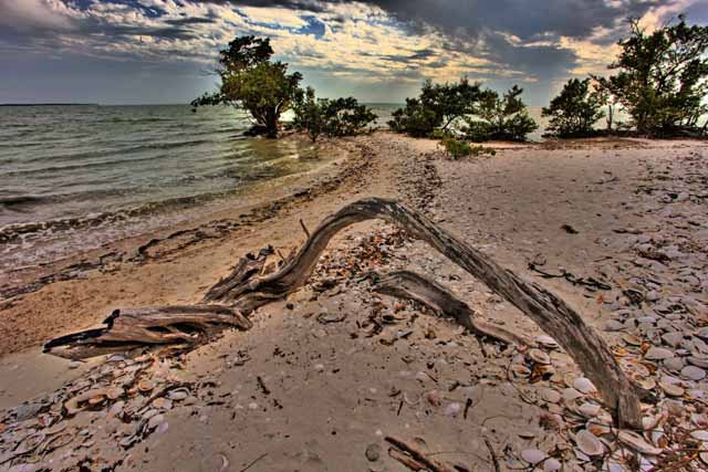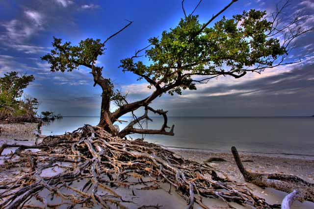 When the tide is low a land bridge forms between New Turkey Key and Turkey Key to the Northeast. This is a shot of a cool old mangrove that is normally underwater at high tide. I actually paddled over this bridge on my way in yesterday. The tides in this area tend to run near the 4 foot range and winds can push that number a foot or two more in either direction. Last year I had a 6' tide swing while at the Broad River Campsite when a cold front came through.