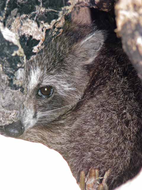 Down in the hollows lies the little raccoon in wait for the human to leave. I take a few quick shots and leave the critter to the naturals of its home. Life surely is not easy out in the wild animal kingdom, no feeding trough here.