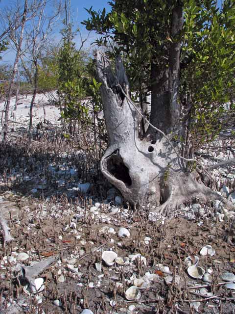 Do not want to disturb the little fellow so I walk the opposite way but do see the shelter it seeks. This old mangrove tree provides temporary protection. I approach wanting to know if it could possibly hide here.