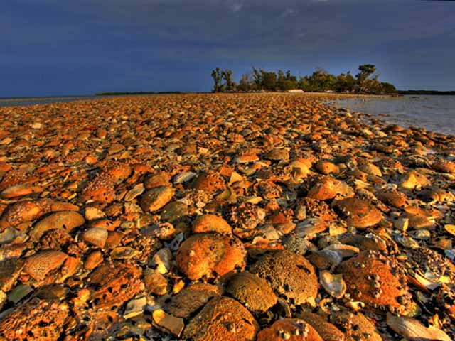 This is a good 17mm wide angle perspective of the shell bar extension into the Gulf of Mexico at low tide. All of these shells are completely underwater during high tide. I would not want to be out here barefoot! It is mostly clam shells with a few oysters and conchs thrown in. The pre-Spanish Indians sure must have lived here a very long time to amass this amount of shells. Most all of these islands are made up of a shell base from the native Calusa Indians. Many many generations of hunting and gathering here. I have the utmost respect for these prehistoric places.
